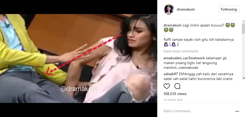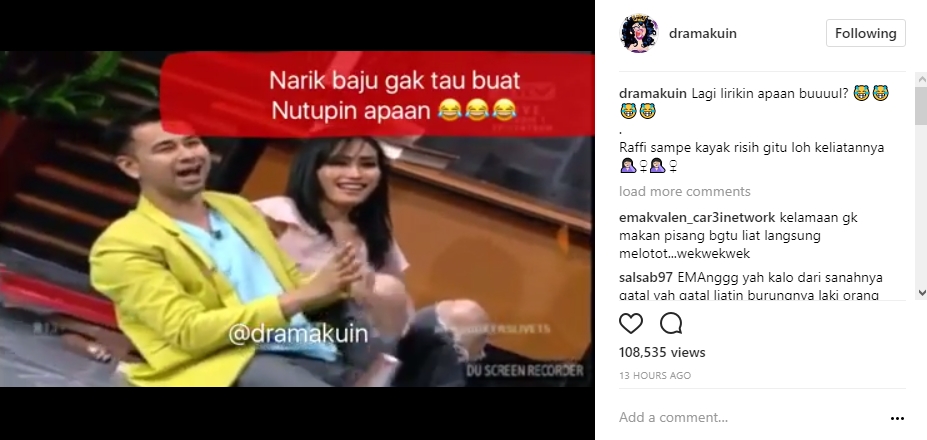 Sementara itu, Raffi Ahmad terlihat salah tingkah. Ia bahkan menutup bagian sensitifnya dengan kaus biru yang sedang dikenakannya.