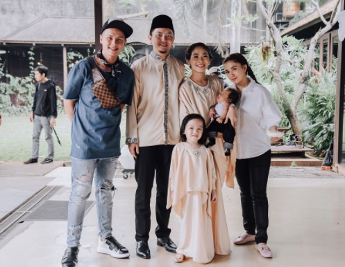 Keluarga harmonis Andhika Pratama dan Ussy Sulistiawaty datang dengan pakaian kasual nih, yang penting doanya ya!