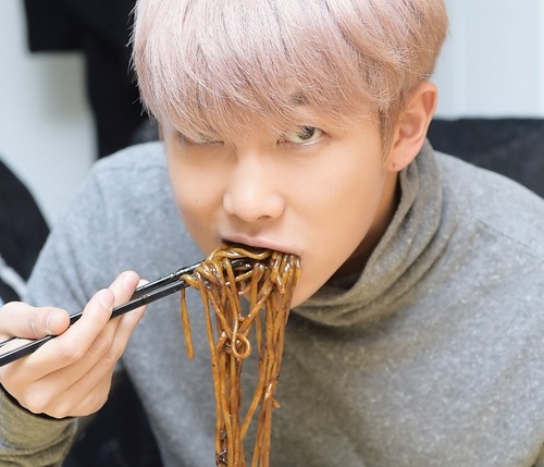 Makanan kaya karbohidrat seperti roti dan mie tidak baik menurut agensi K-Pop. Makan mie sama bersalahnya dengan makan roti sehingga dilarang memakannya. Terlebih selama masa promo single atau album. Salah satu idola K-Pop yang suka makan mie adalah Rap Monster Bangtan Boys. Pihak agensi melarang Rap Monster memakan black noodles kesukaannya ketika dalam masa promosi. Pernah suatu kali, saking tidak tahannya ingin makan black noodle, Rap Monster pura-pura minta izin mau ke toilet, padahal sebenarnya dia pergi ke restoran terdekat. Dia makan mie cepat-cepat, hanya dua suap, lalu kembali ke agensinya.
