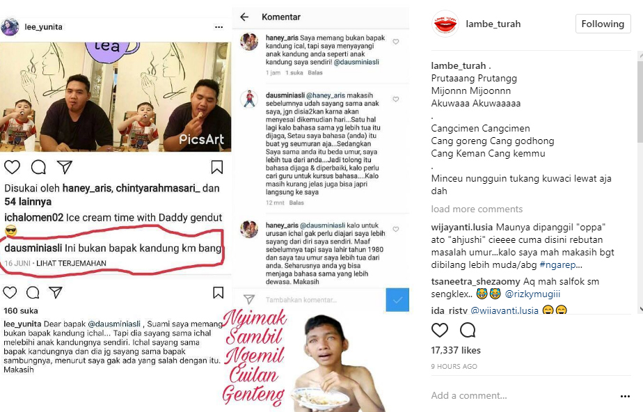 Bukan hanya satu foto, Daus juga memberikan komentar pada dua potret kebersamaan sang putra dengan Haney. "Ini bukan bapak kandung km bang," komentar Daus dalam foto tersebut.