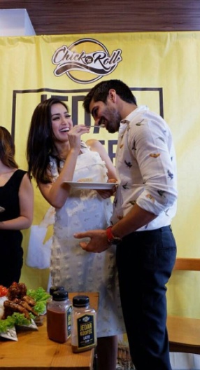 Vishal Singh dan Jessica Iskandar tak malu-malu lagi mengumbar kemesraan mereka, bahkan hingga saling suap seperti ini...