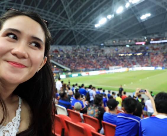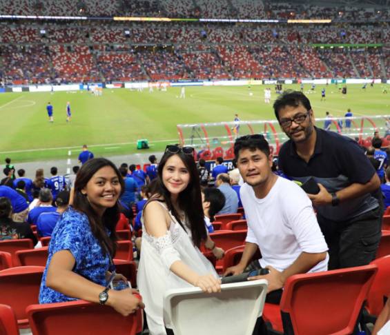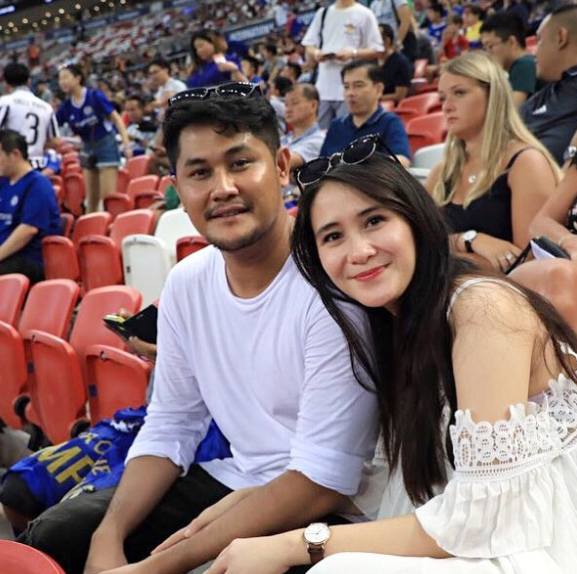 Ryana Dea jadi bumil cantik saat menonton pertandingan Chelsea vs Inter Milan di National Stadium, Singapura.