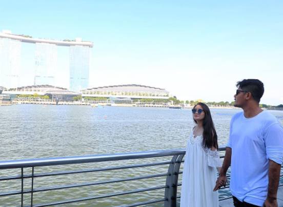 Tak lupa menikmati jalan-jalan santai di kawasan sekitar Patung Merlion bersama sang suami, romantisnya juara!