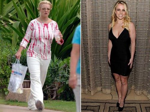 Di awal kariernya, Britney Spears sempat memiliki tubuh yang ramping. Tapi setelah melahirkan dan mengalami stres, Britney sempat gendut. Untuk bisa tetap eksis di jagad hiburan, Britney berupaya keras mengembalikan tubuhnya menjadi lebih langsing.