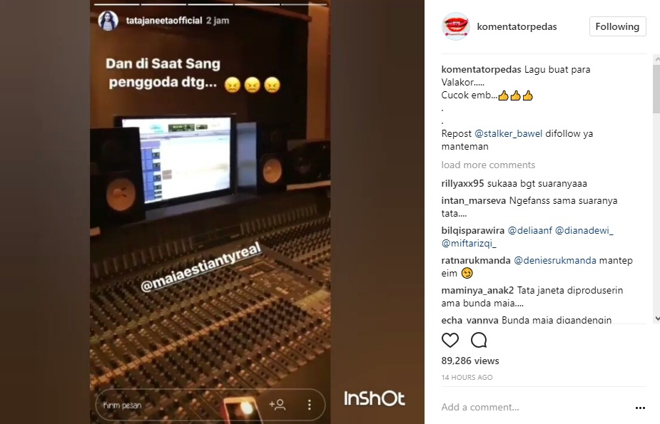 Postingan yang diunggah ulang oleh akun @komentatorpedas sontak membuat netizen heboh. Apalagi, keterangan postingan Tata Janeeta seolah ikut merasakan kepedihan dalam lagu tersebut. "Dan di Saat Sang penggoda dtg..." tulis Tata Janeeta dalam keterangan postingan di Instagram Story miliknya sambil menandai akun Maia.