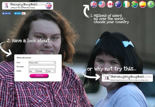 Melalui situs theuglybugball.com, orang-orang yang merasa dirinya gendut, tak menarik, tak berwajah tampan atau cantik, bisa tampil percaya diri. Sebab situs ini dikhususkan bagi mereka yang memang memiliki wajah pas-pasan atau tak memiliki fisik yang banyak dikagumi. Website yang berasal dari Inggris ini sudah banyak mempertemukan orang-orang yang merasa dirinya tak menarik.