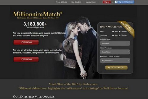 Situs kencan millionairematch.com hanya menerima member yang kaya raya atau memiliki harta yang melimpah. Slogannya: "Anda orang kaya? Takut bertemu dengan calon jodoh yang hanya memanfaatkan harta kekayaan Anda, bergabunglah di millionairematch.com. Anda akan menemukan cinta sejati, tak perlu takut ditipu lagi. Bertemu dengan kekasih yang sama suksesnya dengan Anda dan tentunya masih single!"