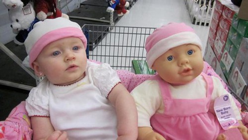 Foto-foto Lucu Bayi yang Mirip Boneka Mainannya