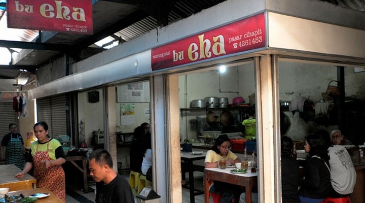 Ada warung nasi yang melegenda di Bandung, yakni warung nasi Bu Eha yang sudah ada sejak tahun 1947. Warung nasi ini mempunyai pelanggan tokoh-tokoh penting di indonesia, salah satunya Presiden Soekarno. Sang istri, Ibu Inggit Garnasih lah yang kerap memesan makanan di warung ini untuk Bung Karno.