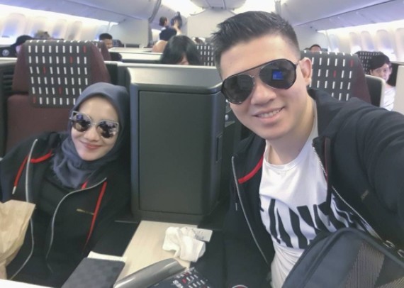 Ini potret mereka saat pesawat lepas landas membawa mereka ke Jepang. Pasangan ini disebut pasangan paling kompak dalam hal apapun nih.