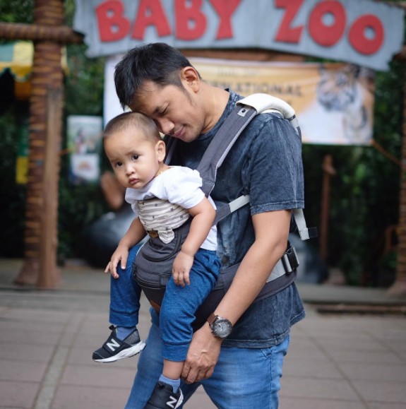 Bhai Kaba memang super menggemaskan. Lihat ekspresi datarnya saat digendong sang ayah ini. Uh, gemas!