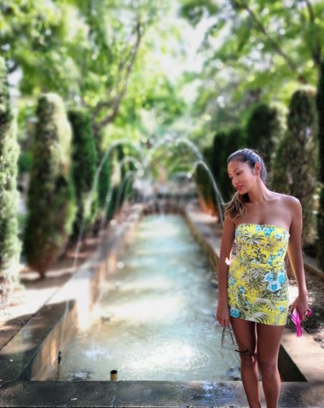 Shanty juga berkunjung ke gereja Cathedral yang terletak di kawasan Palma, Illes Balears, Spanyol. Mengenakan mini dress berwarna kuning, Shanty mengeksplore bebas kulit eksotisnya.
