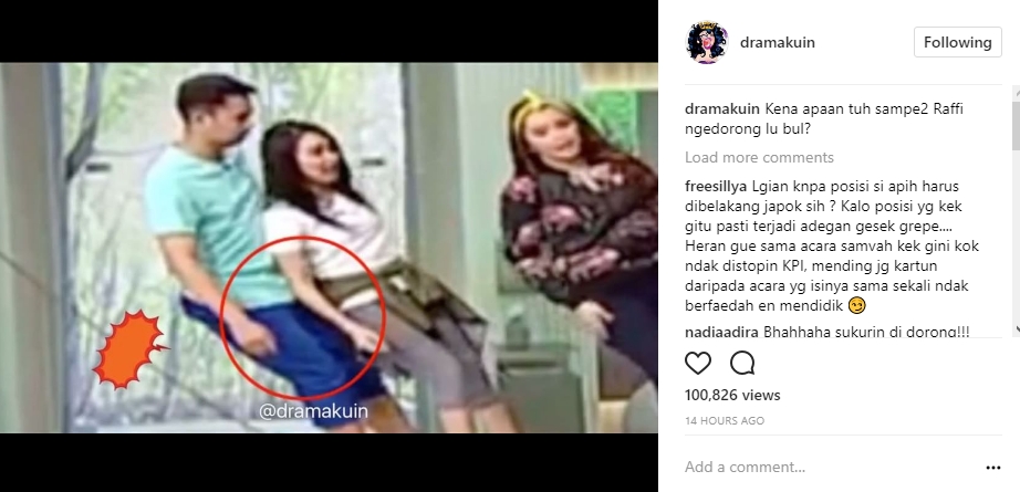 Tak hanya mundur, lengan Ayu Ting Ting sesekali tak sengaja menyentuh Raffi. Mendapat perlakuan itu, Raffi Ahmad tiba-tiba mendorong keras Ayu Ting Ting sehingga menabrak Vega. "Kena apaan tuh sampe2 Raffi ngedorong lu bul?" tulis akun @dramakuin dalam caption postingannya.