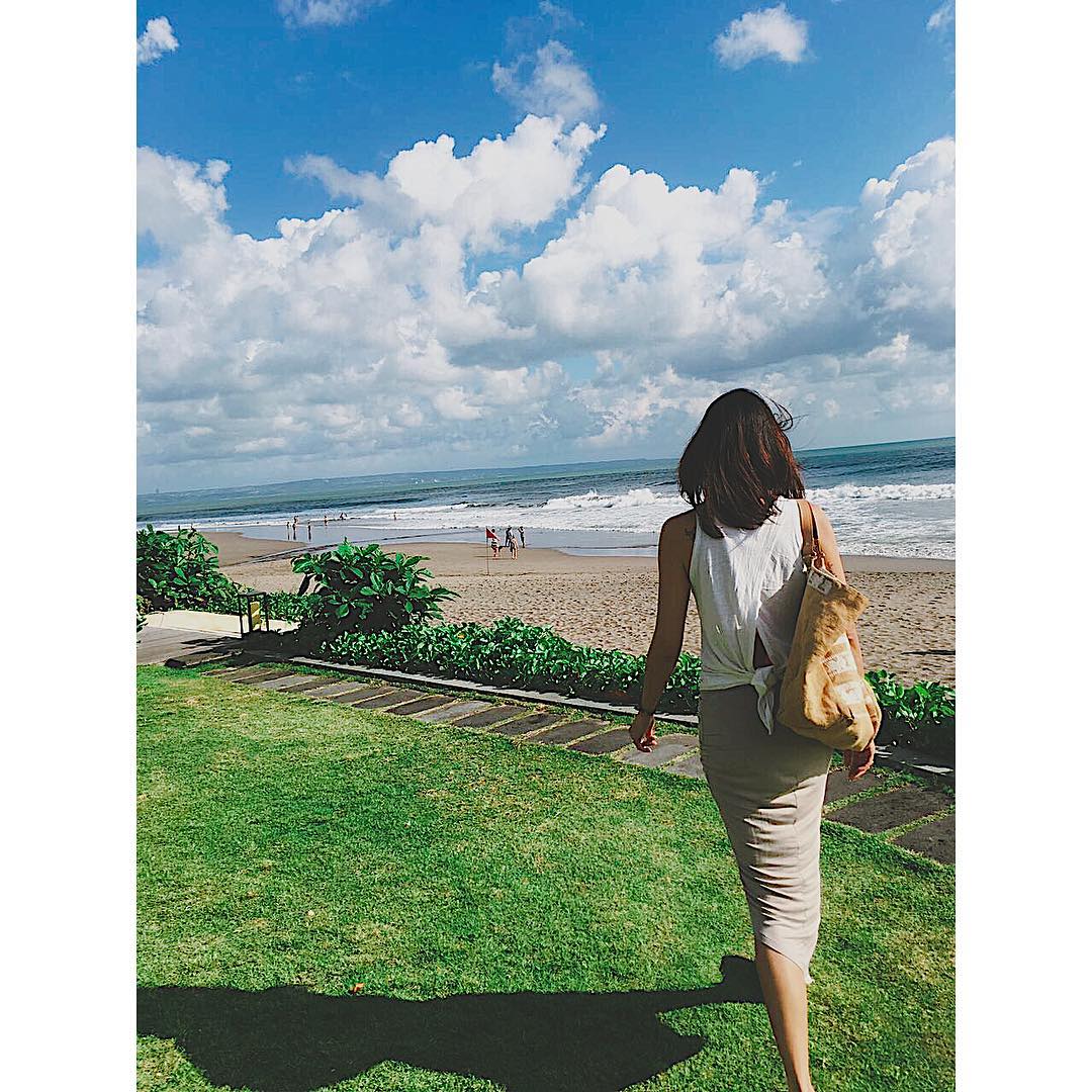 Sophia Latjuba mampir sebentar di Beach Bar Hotel Alila yang terletak di kawasan Seminyak, Bali. Wajar dong, ke Bali harus mampir ke pantainya dulu.