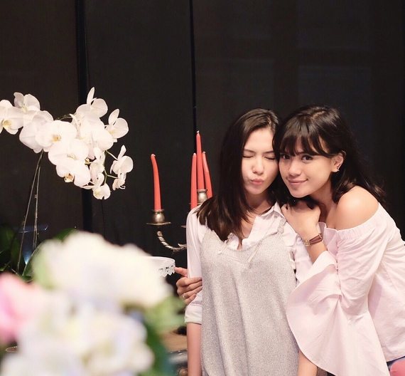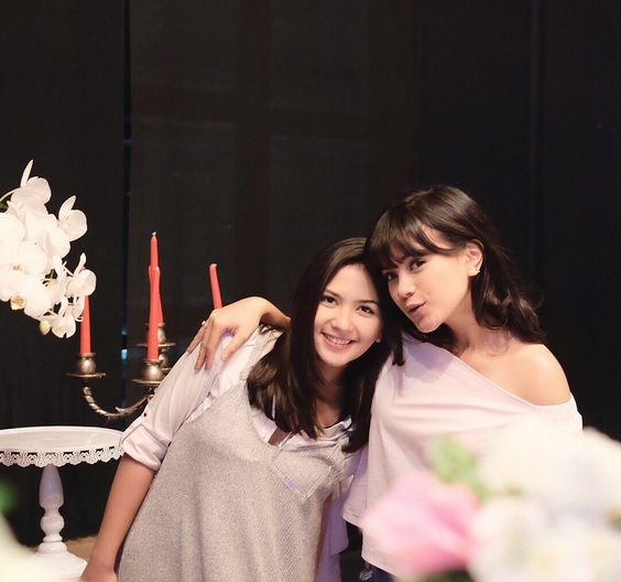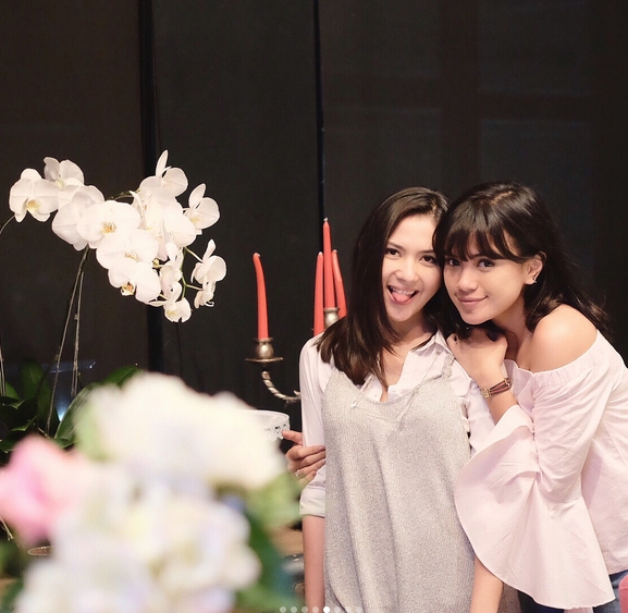 Sama-sama berpakaian warna pastel, keduanya nampak sangat bahagia dalam perayaan ulang tahun ke-25 Jessica Mila tersebut.