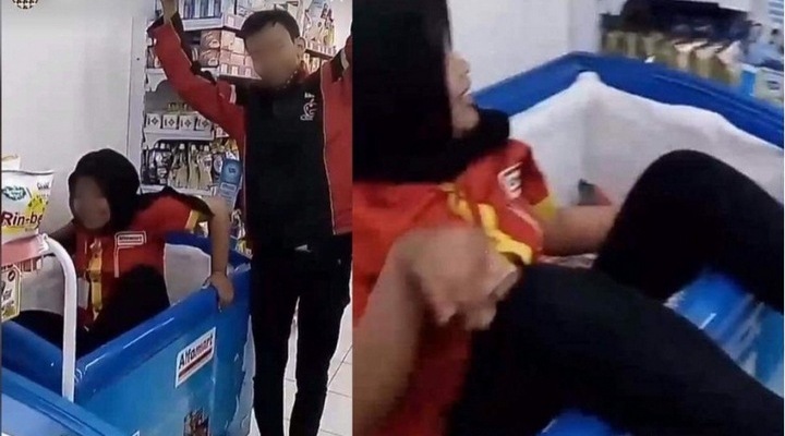 Aksi Konyol Pegawai Alfamart Masuk ke Lemari Pendingan Viral di Media Sosial