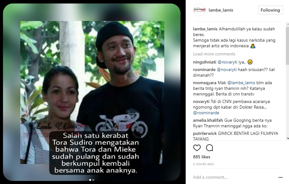 Netizen bersyukur permasalahan Tora Sudiro dan Mieke Amalia dikabarkan telah selesai.