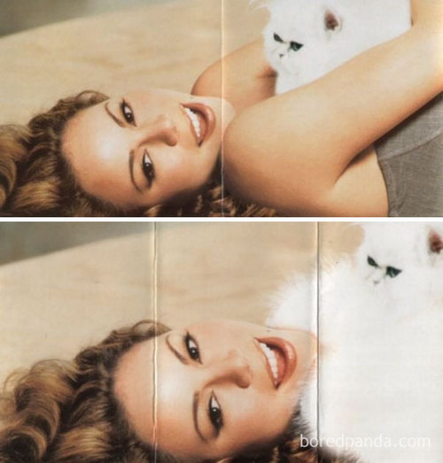 Album Mariah Carey juga tak luput dari sensor. Untuk menutup bagian dada yang terbuka, pihak penyensor menggunakan bulu-bulu kucing.