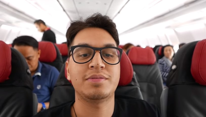 Demi memanjakan fansnya, Kevin Julio menyempatkan diri untuk membuat vlog liburannya ke Jepang, ini adegan pertamanya saat ia sedang naik pesawat.