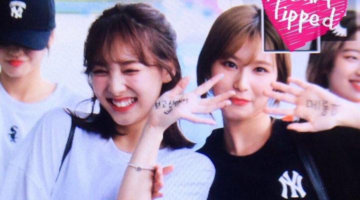 Seperti yang terjadi saat mereka berada di bandara internasional Gimpo, Seoul baru-baru ini. Di saat member lainnya terlihat sesekali membungkuk sopan kepada fans, maka Nayeon dan Sana dengan cute-nya menunjukkan telapak tangan mereka yang memiliki tulisan "i miss you" di tangan kanan. Sementara di telapak tangan kiri mereka menggambarkan emoji ":p". Saat itu Twice akan terbang ke Jepang untuk promo.