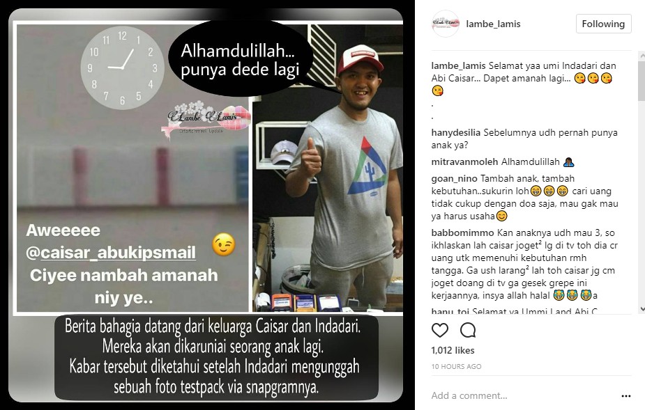 Tak hanya itu, netizen pun menduga alasan Caisar kembali berjoget semata-mata demi calon anak di kandungan sang istri. "Sudah kejawab kan alasan balik joged?? Buat yang kemarin panas sampai mau open donasi karena malu dibilang cuma bisa omong doang, berapa kali dan berapa lama seh kalian bisa donasi buat hidup mereka?? Salut berarti dia bapak yang bertanggungjawab dan sadar anak itu amanah, bukan asal bikin trus ditelantarin dengan hidup seadanya," ujar netizen. "Rejeki dede bayi," ujar lainnya. "Waaah selamaaatt..mungkin yg galau galau kmrn itu pengaruh hormon ibu hamil yaaa...dimaklumi aja bumil emang moodnya suka naik turun gak menentu," timpal lainnya.