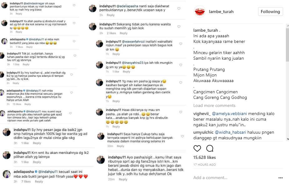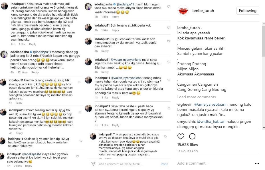 Hal tersebut diakui oleh seorang wanita dengan nama akun @indahpu11 melalui kolom komentar di lapak Adelia. Mula-mula, wanita itu menyebut Adelia telah merebut Pasha dari istri sebelumnya, Okie Agustina.