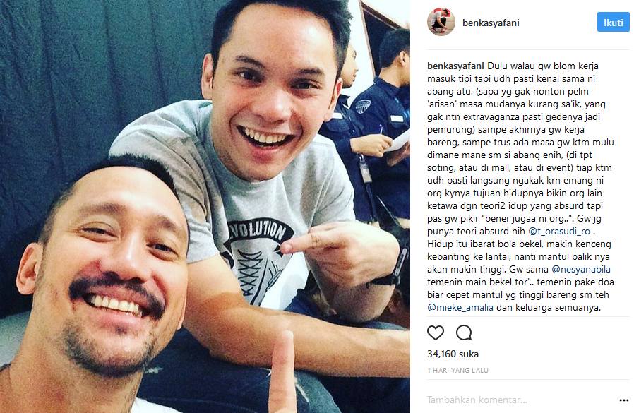 Ben Kasyafani menuliskan keterangan panjang dalam fotonya bersama Tora Sudiro. Ben memberikan nasihat pada Tora bahwa hidupnya sedang diuji layaknya bola bekel, dimana semakin kencang ia terbanting di lantai maka semakin tinggi pula pantulannya. Dukungan yang Ben berikan adalah siap menemani Tora untuk 'bermain bola bekel'.