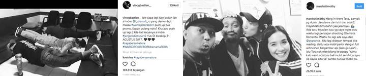 Setali tiga uang dengan Abimana, Vino Bastian dan sang istri, Marsha Timothy menjadi supporter utama kasus Tora Sudiro. Mereka menuliskan kenangan-kenangan saat Tora masih bebas dari tahanan. Tagar #sayabersamatora juga sering muncul dalam unggahan mereka terlebih Vino sedang promosi film "Warkop DKI Reborn" yang ia bintangi bersama Tora Sudiro.