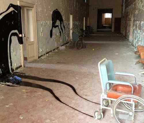 Rumah sakit jiwa yang sudah lama ditinggalkan penghuninya ada di Parma, Italia. Rumah sakit jiwa ini tampak menyeramkan dan tak terawat. Terlihat masih ada barang yang ditinggalkan seperti kursi roda, dan perlengkapan rumah sakit lainnya. Hal yang aneh adalah sebuah grafiti berbentuk sosok bayangan hitam yang menyeramkan. Sepertinya itu gambaran makhluk yang bersemayam di rumah sakit jiwa kosong tersebut.