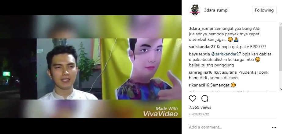 Mengetahui hal tersebut, netizen pun ikut prihatin dengan kondisi Aldi. Mereka bahkan meminta Aldi untuk mengikuti asuransi yang dapat menanggung biaya pengobatannya. "Kenapa gak pake BPJS????" kata netizen. "Ikut asuransi Prudential donk bang Aldi , semua di cover," timpal lainnya.