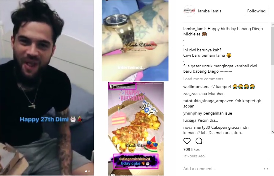 Wanita seksi itu memberikan kejutan ulang tahun pada Diego Michiels yang tengah berulang tahun ke-27 tahun.