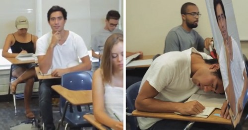 Ini adalah cara kreatif agar kamu tidak ketahuan saat sedang tidur di kelas dan pelajaran sedang berlangsung. Cara ini dibuat oleh seorang creator bernama Zach King lewat video lucu di akun Vine milikinya.