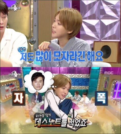 "Ucapan Yang Hyun Suk saat itu merupakan hal yang sangat menyakitkan untuk didengar oleh seseorang yang telah berusaha dengan sangat keras," ungkap Kim Jin Woo. Selanjutnya, ia pun mengaku ingin memberikan sedikit balas dendam pada Yang Hyun Suk atas ucapannya yang menyakitkan itu. "Oleh karena itu, aku pernah sekali menuliskan nama Yang Hyun Suk di dalam buku 'Death Note'," papar Kim Jin Woo dan sukses membuat para hadirin dan bintang tamu lainnya terbahak-bahak.