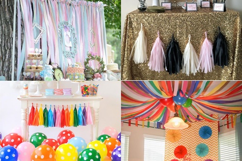 Kertas crepe yang harganya relatif murah ini juga sangat serbaguna. Kamu bisa menjadikannya penghias langit-langit hingga tembok untuk background ulang tahun. Saat ini kertas crepe sudah banyak beredar dalam bentuk-bentuk yang lucu seperti pom-poms, honeycomb, pinwheel, dan lain sebagainya yang tentunya memudahkan kamu untuk membuat dekorasi ulang tahun.