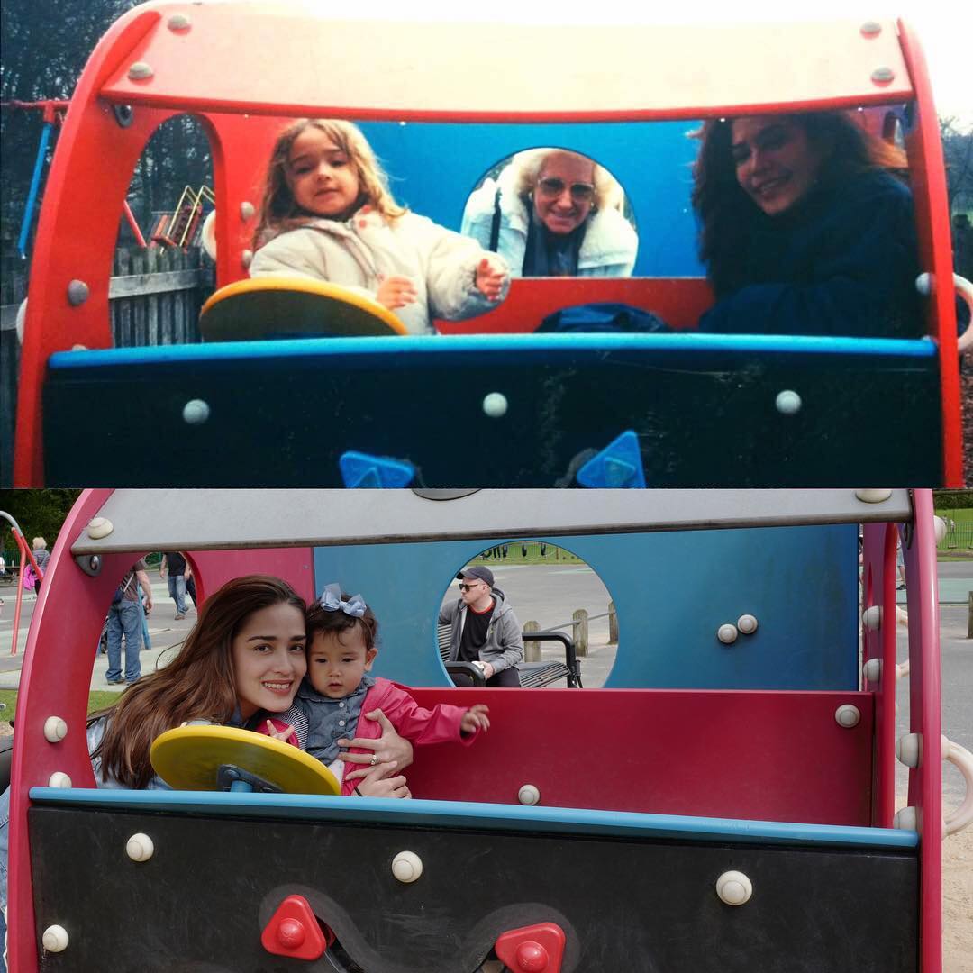 Di sana Yasmine Wildblood mengenang masa kecilnya bersama keluarga. Dia bahkan membuat momen yang sama persis seperti dirinya saat masih kecil dulu.