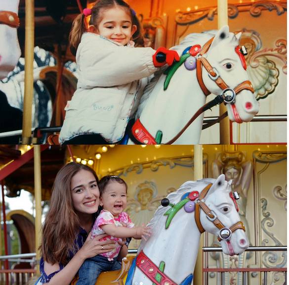 Di lokasi yang sama dengan kuda yang sama, Yasmine Wildblood mengajak sang anak mengenang masa lalunya disini. Duh mirip banget deh.