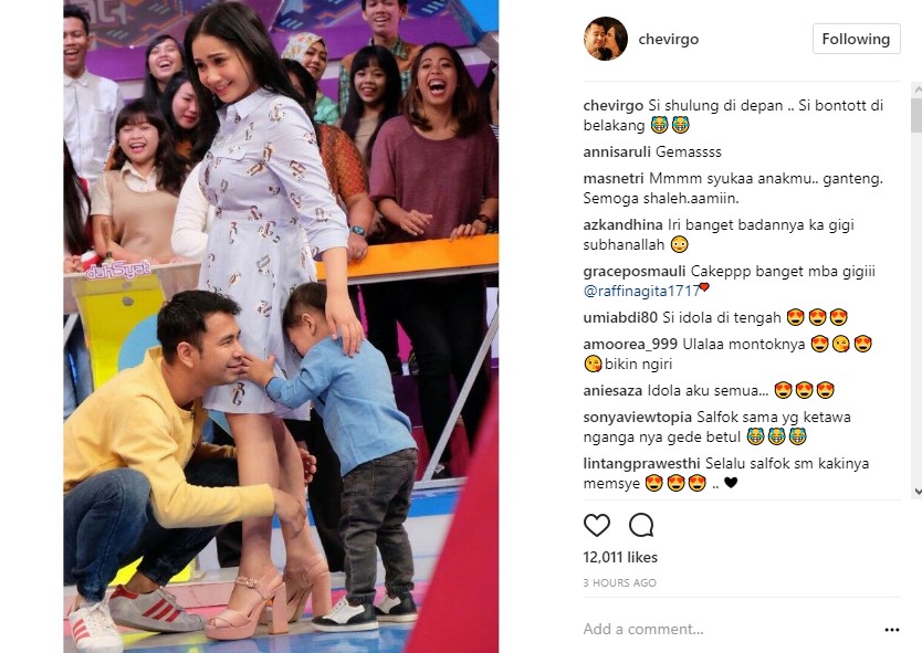 Keinginan para fans itu sebenarnya berawal dari postingan akun @chevirgo belum lama ini. Dalam postingan itu, terlihat kaki Nagita Slavina yang menghadiri program musik di salah satu stasiun televisi tengah dipeluk oleh dua orang spesialnya, sang suami dan putra semata wayangnya, Rafathar Malik Ahmad.