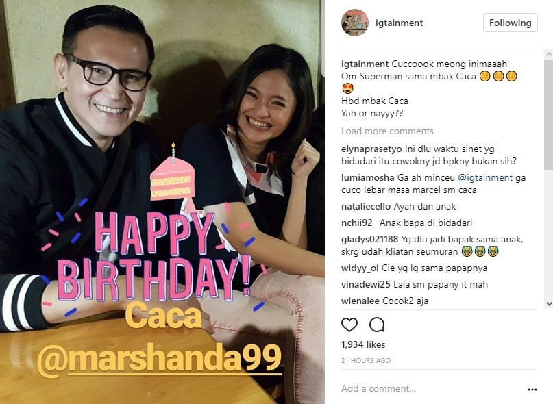 Melalui postingan di akun gosip @igtainment, diketahui Marcelino mengunggah foto bersama Marshanda. "Cuccoook meong inimaaah Om Superman sama mbak Caca Hbd mbak Caca Yah or nayyy??" tulis akun @igtainment dalam caption postingannya.