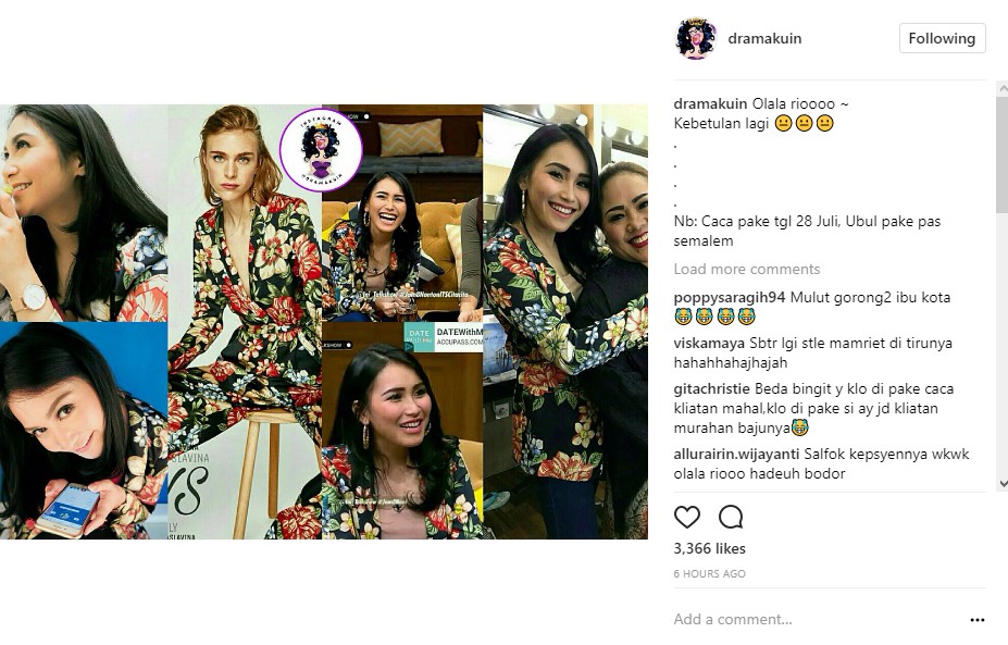 Dalam postingan lainnya, diketahui cardigan yang dikenakan Marsha Tengker alias Caca sama persis seperti milik Ayu Ting Ting. Namun, akun @dramakuin menyebut bahwa Caca mengenakan cardigan bermotif bunga itu lebih dulu daripada Ayu Ting Ting. "Olala rioooo ~ Kebetulan lagi Nb: Caca pake tgl 28 Juli, Ubul pake pas semalem," tulis akun @dramakuin dalam caption postingannya.