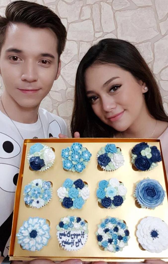Sebagai hadiah ulang tahun, Celine memberikan buket bunga besar berwarna biru lengkap dengan kecupan mesra nih. Romantis!