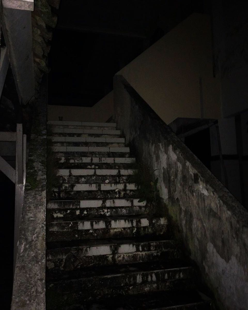 Saat sedang syuting acara "Masih Dunia Lain", Sara Wijayanto mendatangi sebuah rumah sakit yang telah terbengkalai di kawasan Pulau Bali. Salah satu spot yang menarik perhatiannya adalah tangga ini dimana ia melihat sosok anak kecil berusia 8 tahun di ujung tangga. Anak itu berdiri membelakangi Sara. Saat dirinya mulai mendekat betapa terkejutnya ia lantaran si anak kecil tersebut ternyata memiliki wajah nenek-nenek dan memiliki gigi taring. Sara pun akhirnya memilih kabur saking takutnya.