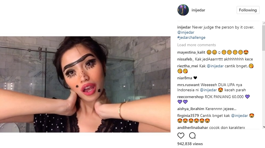 Jedar pun seolah menyuarakan pendapatnya untuk tak menghakimi seseorang hanya dengan melihat wajahnya. "Never judge the person by it cover. @inijedar #jedarchallenge," tulis Jedar dalam caption postingannya.