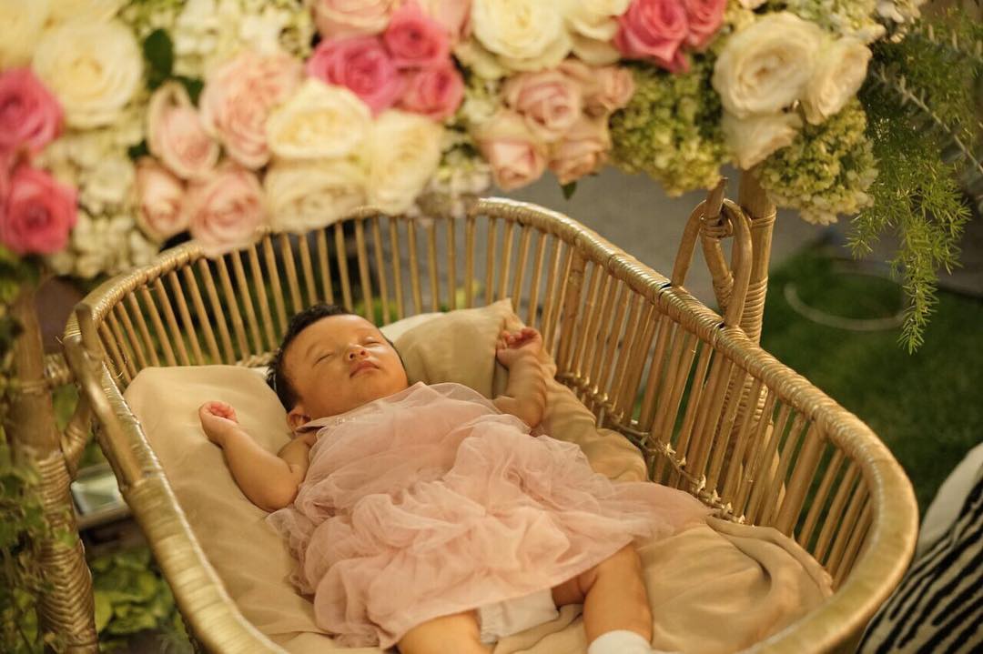 Rio Dewanto dan Atiqah Hasiholan menggelar aqiqah untuk putri pertama mereka dengan dekorasi sederhana namun elegan seperti ini.