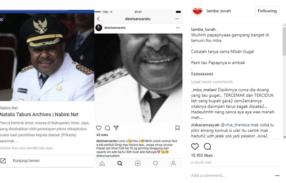Klarifikasi pejabat Papua itu membuat netter malah menyerang Dewi Sanca.
