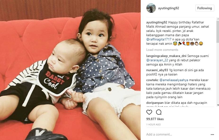 Melalui postingan di akun Instagram pribadinya, Ayu Ting Ting pun mengucapkan selamat ulang tahun pada Rafathar. "Happy birthday Rafathar Malik Ahmad semoga panjang umur, sehat selalu, byk rezeki, pinter, jd anak kebanggaan mama dan papa @raffinagita1717 n apa yg dcita"kan tercapai nak amin," tulis Ayu Ting Ting dalam caption postingannya.