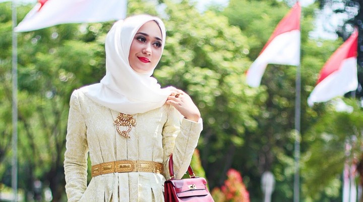 Untuk tampil cantik dan anggun di perayaan Agustusan seperti Dian Pelangi, kamu perlu siapkan bawahan batik dengan atasan bernuansa merah putih.