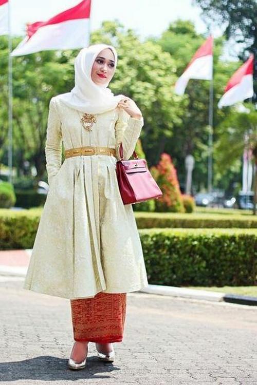 Tak kalah cantik, kamu juga dapat memadukan songket batik dengan tunik panjang. Inspirasi style yang satu ini akan membuat kamu terlihat anggun. Perpaduan warna yang dipilih Dian bernuansa merah putih, pas untuk acara Agustusan.