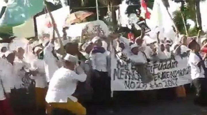 Video demo full day school ramai diperbincangkan di media sosial lantaran para santri dan anak-anak yang ikut serta menyerukan kalimat 'bunuh menteri'.