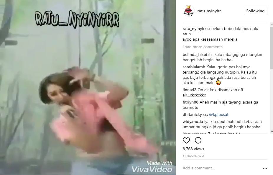 Tak berbeda jauh dengan Ayu Ting Ting, pada postingan lainnya, terlihat Zaskia Gotik melakukan aksi seperti sahabatnya itu. Saat bergoyang di atas panggung, pakaian longgar berwarna pink milik Zaskia pun terangkat karena tangannya sendiri.
