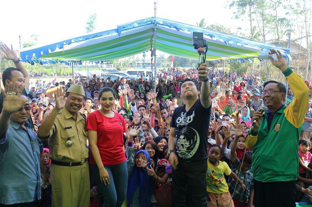 Namun Ashanty tak pelit foto. Dia pun berbaur dengan warga desa dan ikut dalam kerumunan fans-nya tersebut.